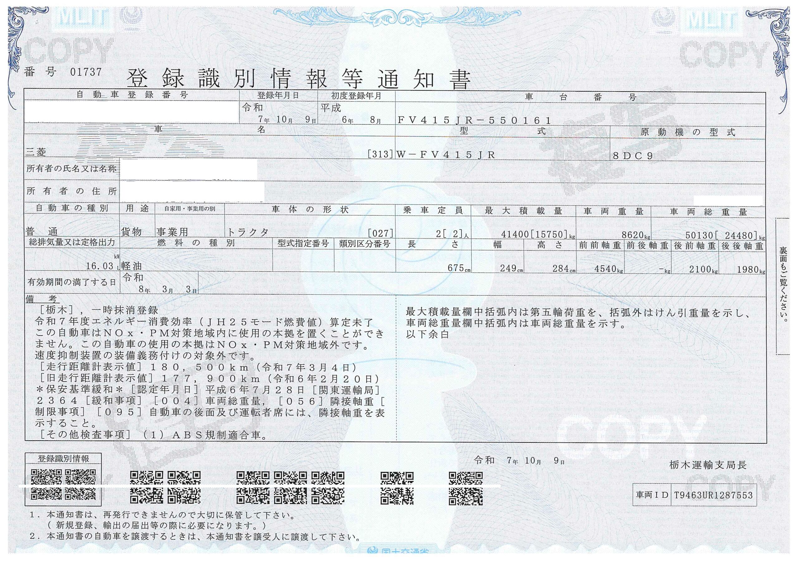 - ※ 詳細情報の数値(寸法、重量、積載量など)は、現在の車両の状態と異なる場合があり、車検時に増トンや構造変更が必要な場合もございます。