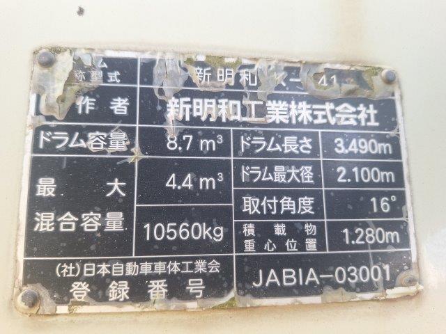 新明和ドラム容量8.7㎥ 最大混合容量4.4㎥ パワーシューター付き 車検R8.3付